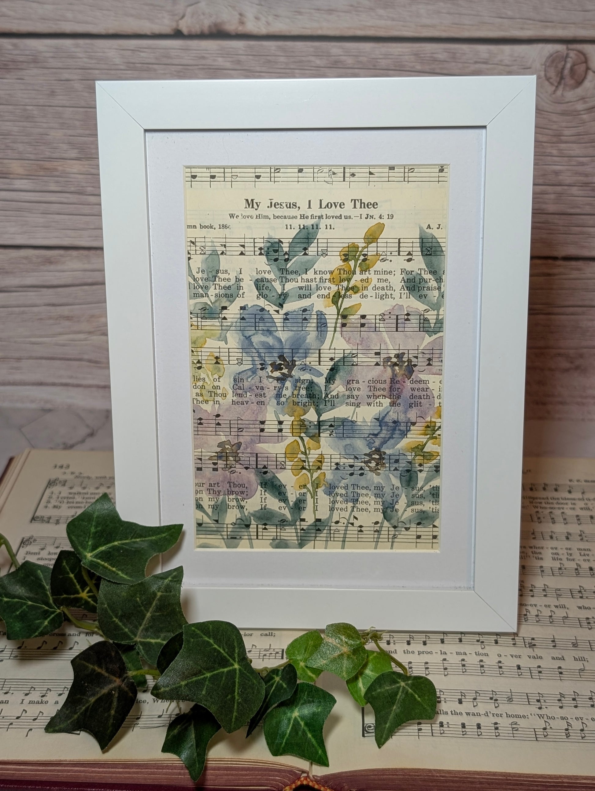 This original watercolor painting is hand-painted on a page taken directly from a vintage hymnal, blending timeless faith with delicate artistry. It comes framed in a 5x7 frame, ready to add a meaningful touch of color and inspiration to your home or gift to someone special.